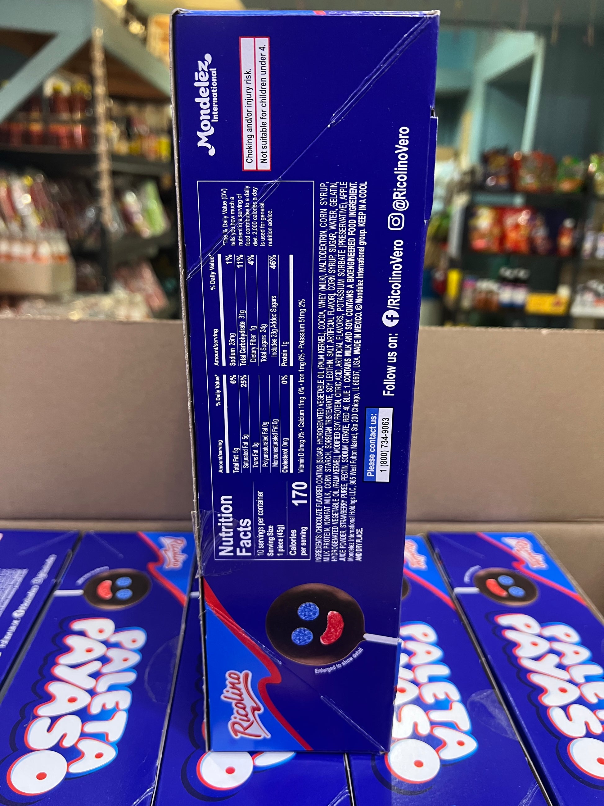 Unwrap a moment of joy with every bite of Ricolino Paleta Payaso a classic Mexican treat that brings smiles to kids and adults alike. Each lollipop starts with a soft, fluffy marshmallow center, perfectly light and chewy, offering a cloud-like texture that melts in your mouth. It's then generously coated in a smooth, chocolate-flavored shell, delivering a rich, indulgent taste that perfectly complements the mellow sweetness of the marshmallow.